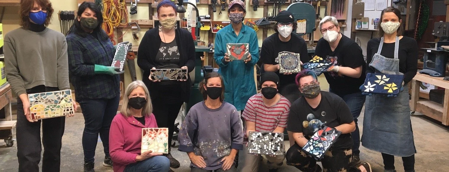 This is a project-based class. You’ll come away from Day 2 with a small finished mosaic for the garden or mantle and skills you can apply to backyard retaining walls and other projects. No art background is required and the possibilities are endless!